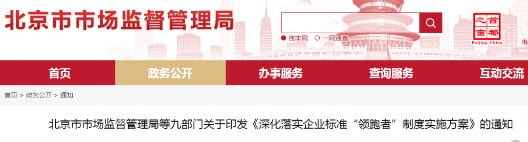 為落實(shí)《中共北京市委 北京市人民政府關(guān)于加快培育壯大新業(yè)態(tài)新模式促進(jìn)北京經(jīng)濟(jì)高質(zhì)量發(fā)展的若干意見》,按照《市場監(jiān)管總局等八部門關(guān)于實(shí)施企業(yè)標(biāo)準(zhǔn)“領(lǐng)跑者”制度的意見》要求,市市場監(jiān)管局等九部門制定了《深化落實(shí)企業(yè)標(biāo)準(zhǔn)“領(lǐng)跑者”制度實(shí)施方案》,經(jīng)市政府批準(zhǔn),現(xiàn)印發(fā)給你們。請認(rèn)真貫徹落實(shí),鼓勵企業(yè)創(chuàng)制先進(jìn)標(biāo)準(zhǔn),促進(jìn)新業(yè)態(tài)新模式發(fā)展壯大,以高標(biāo)準(zhǔn)推動北京經(jīng)濟(jì)高質(zhì)量發(fā)展。