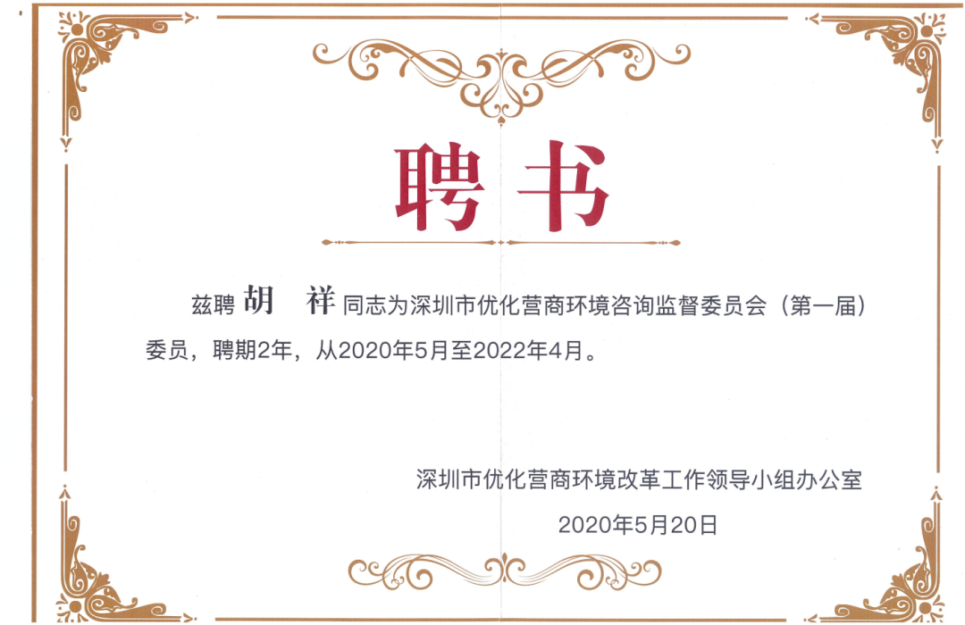 市發(fā)改委副主任郭躍華出席會(huì)議,并為受聘委員頒發(fā)聘書。郭躍華副主任表示,營商環(huán)境是各個(gè)國家、地區(qū)在經(jīng)濟(jì)發(fā)展中非常注重打造的招牌。深圳作為中國特色社會(huì)主義先行示范區(qū),在優(yōu)化營商環(huán)境方面要走在第一陣列,要當(dāng)先鋒、做樣本、做標(biāo)桿,這也是優(yōu)化營商環(huán)境咨詢監(jiān)督委員會(huì)的一個(gè)重要使命。