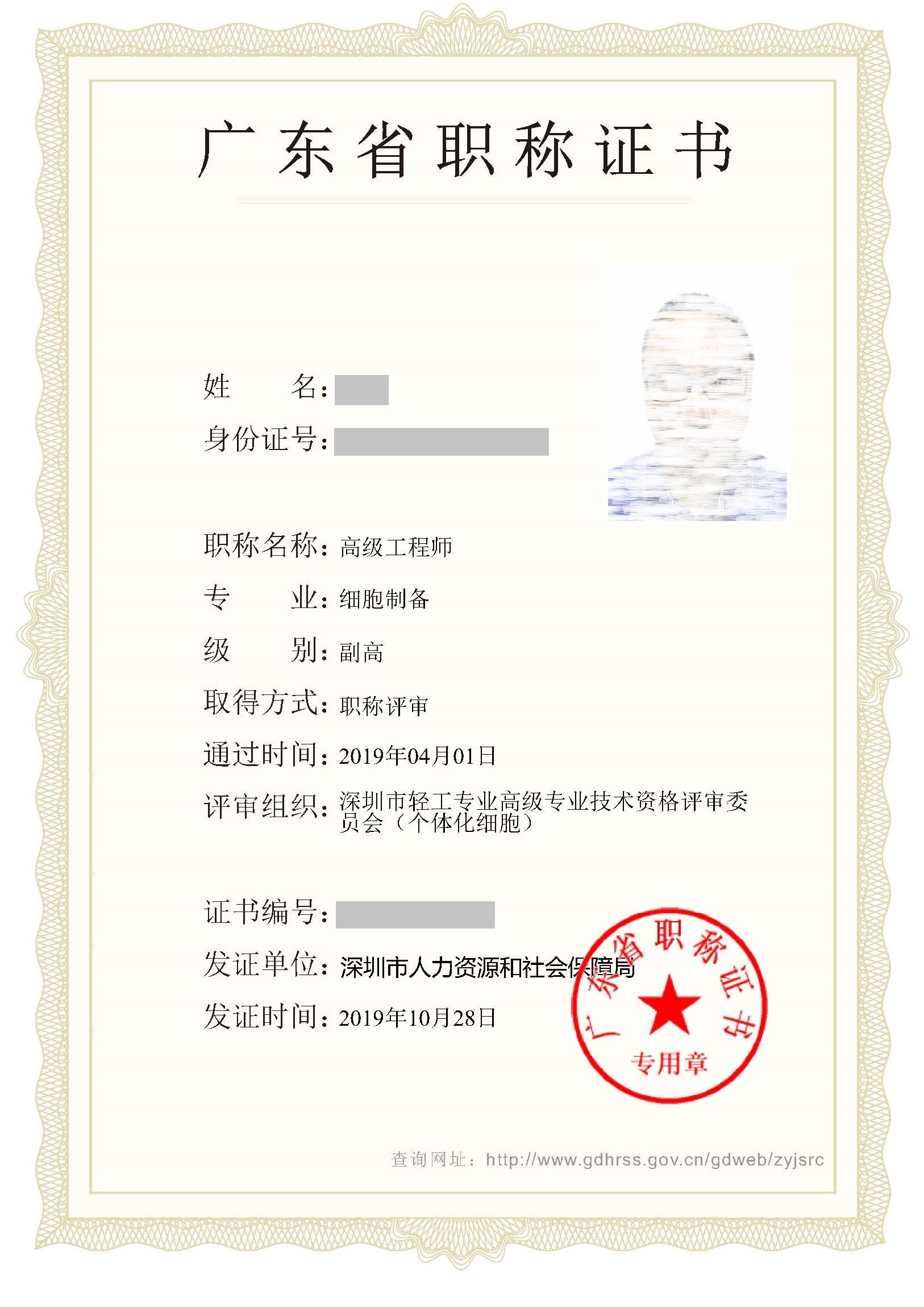 日前,細胞行業(yè)從業(yè)人員迎來了鼓舞人心的消息,由深圳市人力資源與社會保障部頒發(fā)的“細胞制備高級工程師職稱證書”和“細胞質(zhì)量管理高級工程師職稱證書”正式制證完畢,已可通過廣東政務(wù)官網(wǎng)進行查詢。這一里程碑式的事件標志著個體化細胞技術(shù)這一新興行業(yè)的專業(yè)技術(shù)人才,終于擁有了屬于自己的“人才戶口本”,細胞行業(yè)正式開始“執(zhí)證上崗”!