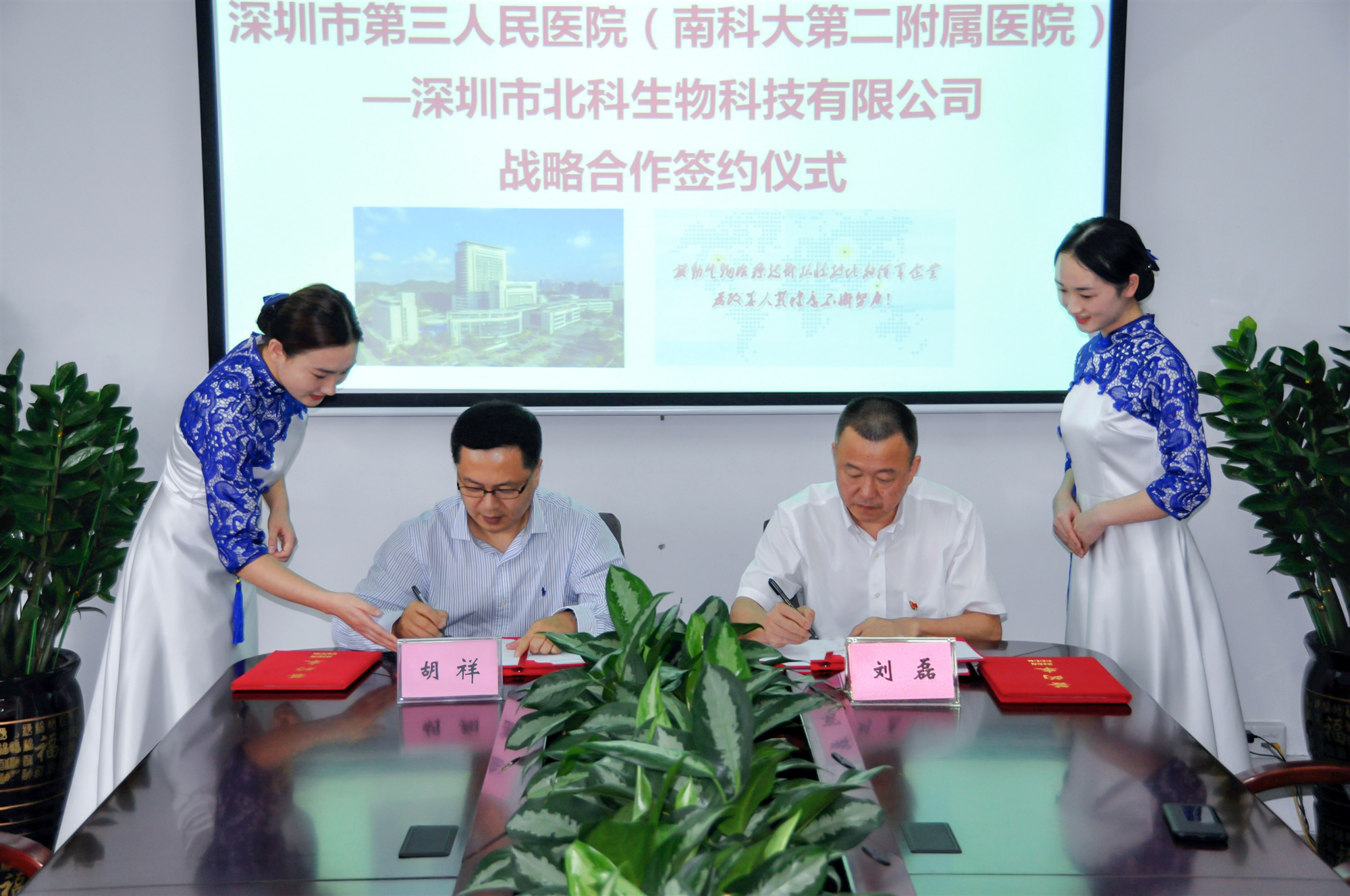 2019年5月28日,北科生物與深圳市第三人民醫(yī)院聯(lián)合舉行了細胞治療及臨床研究戰(zhàn)略合作簽約儀式。深圳市第三人民醫(yī)院院長劉磊、深圳市北科生物科技有限公司董事長胡祥等多位領導、嘉賓出席了此次的簽約儀式。