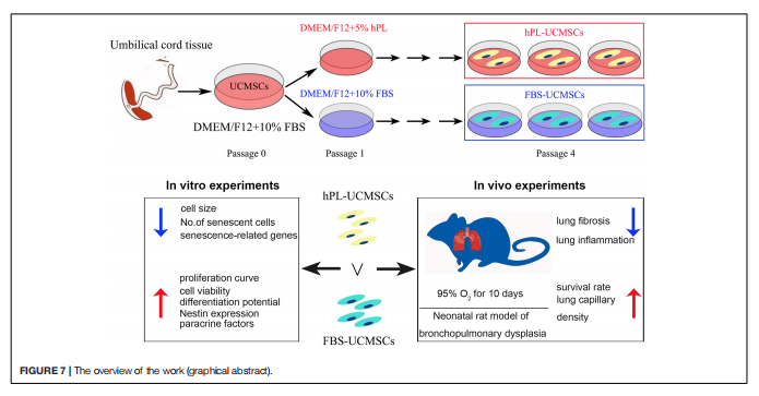 該研究證明了hPL作為UC-MSCs培養(yǎng)的補充添加物所具有的功能作用,表明其重要的臨床使用價值。這將有助于促進hPL在未來UCMSCs規(guī)?;囵B(yǎng)中的廣泛應用,并為臨床BPD患兒的治療應用提供更多幫助。